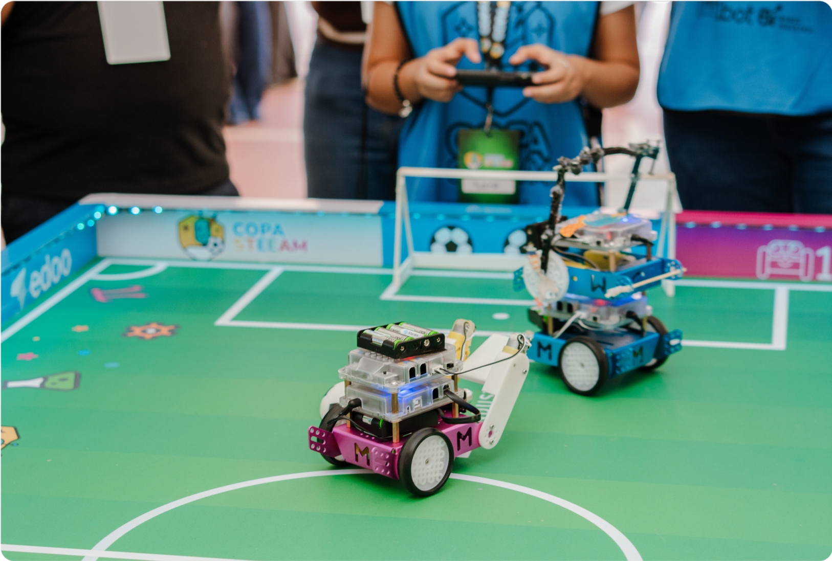 En cada partido, dos equipos se enfrentaron controlando sus robots, diseñados y programados por los propios estudiantes. Cada uno debía crear un mecanismo de pateo y una estrategia para marcar más goles que el rival. La emoción de la competencia y la creatividad de los participantes hicieron de este torneo una experiencia inolvidable.