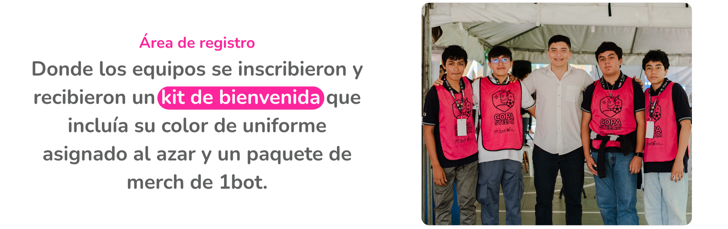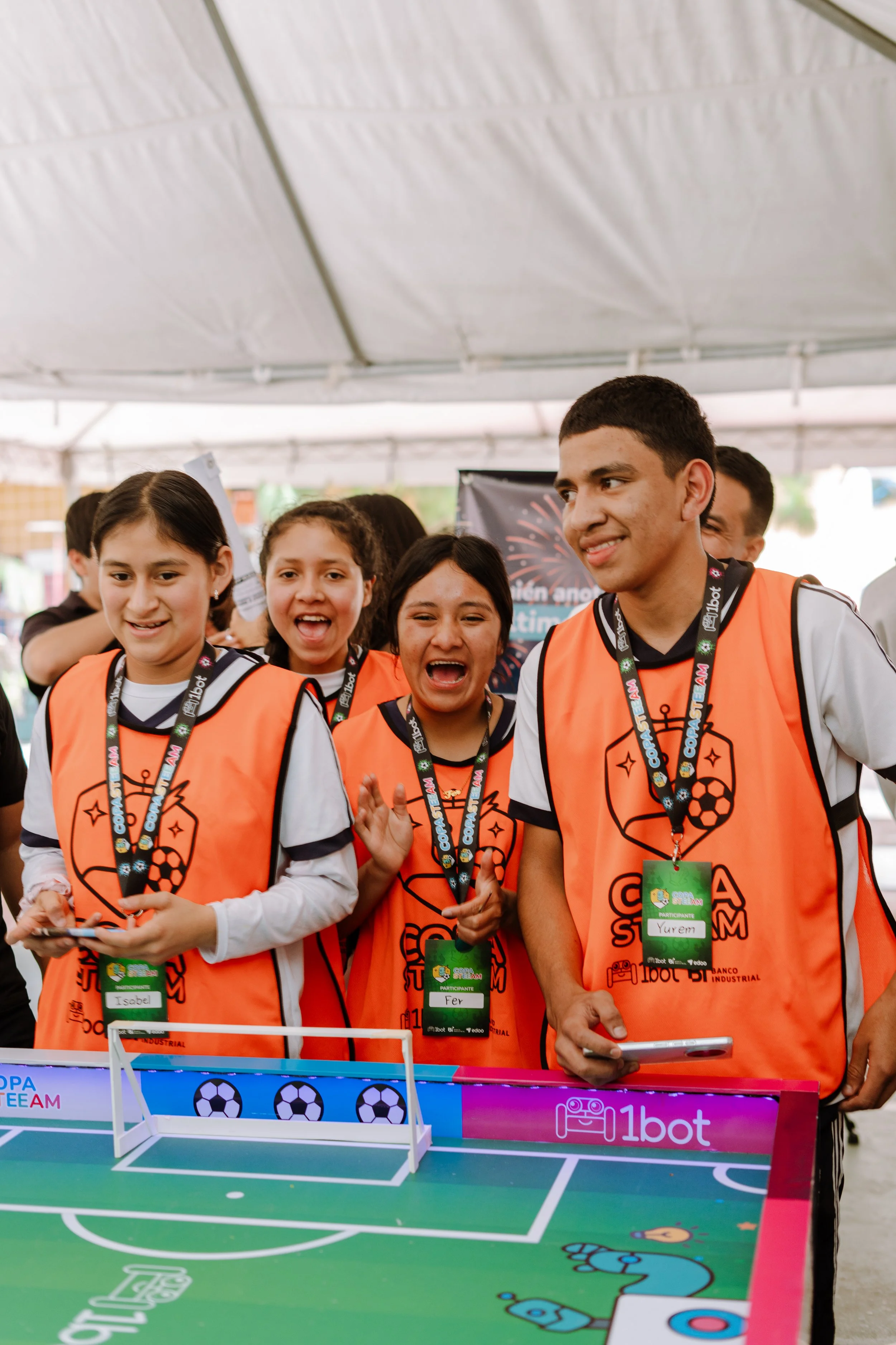“Nunca había sentido tanta emoción en un evento de robótica. Estar en la cancha, controlar al robot y escuchar a mi equipo animándome fue algo inolvidable.” - Estudiante del colegio INBATEL.